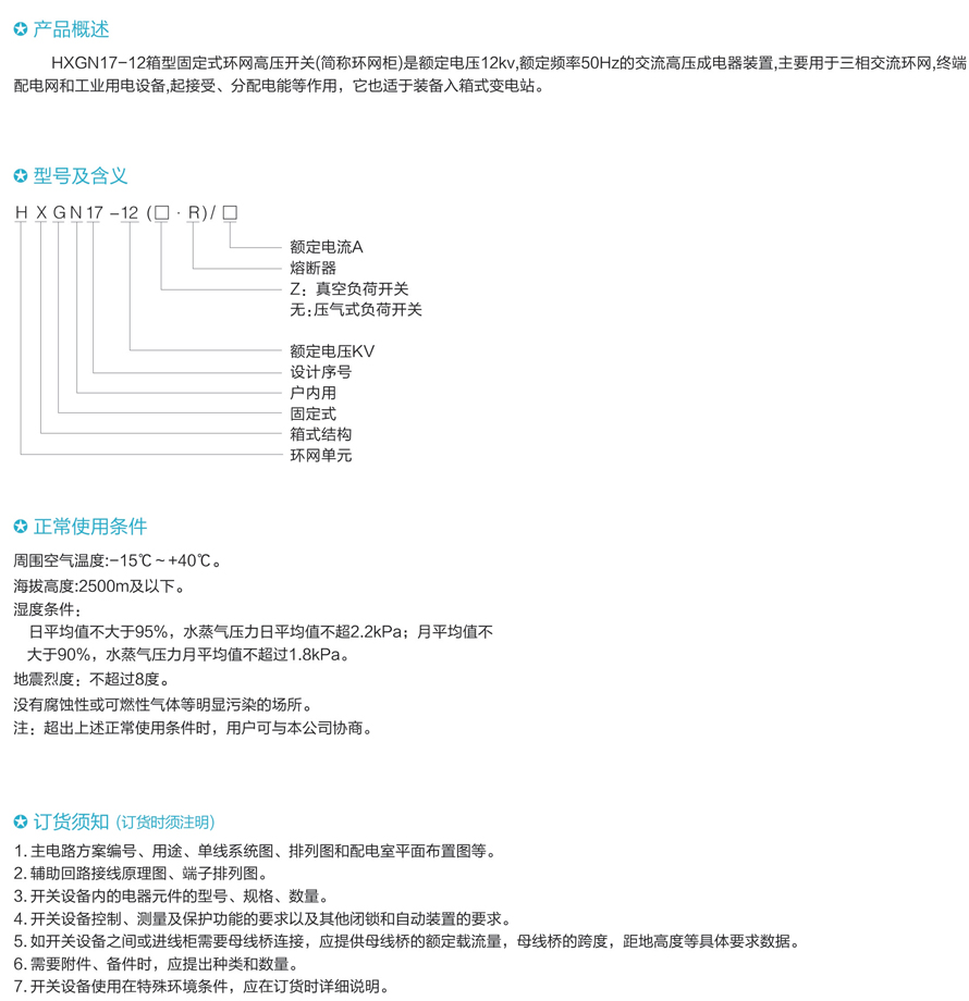 HXGN17-12箱型固定式環網高壓開關(環網柜)